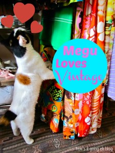 Aww Megu’s such a sweetie!! How about making her a cat collar from those lovely vintage fabrics? 😉