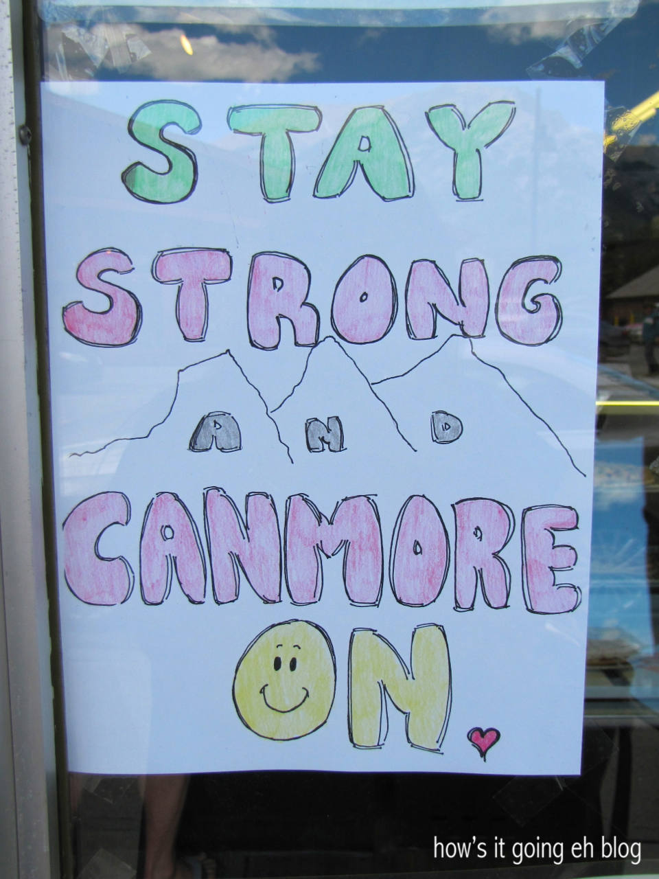 Into Canmore, there were these cute signs printed + colored by the community, taped on all the windows.