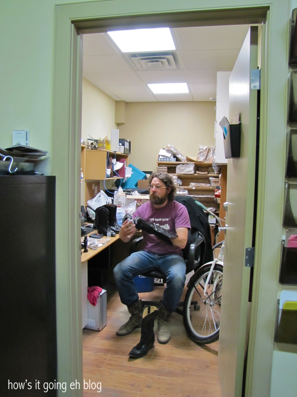 Later at the store, Jeff + I sat in the back polishing + cleaning cowboy boot after cowboy boot.