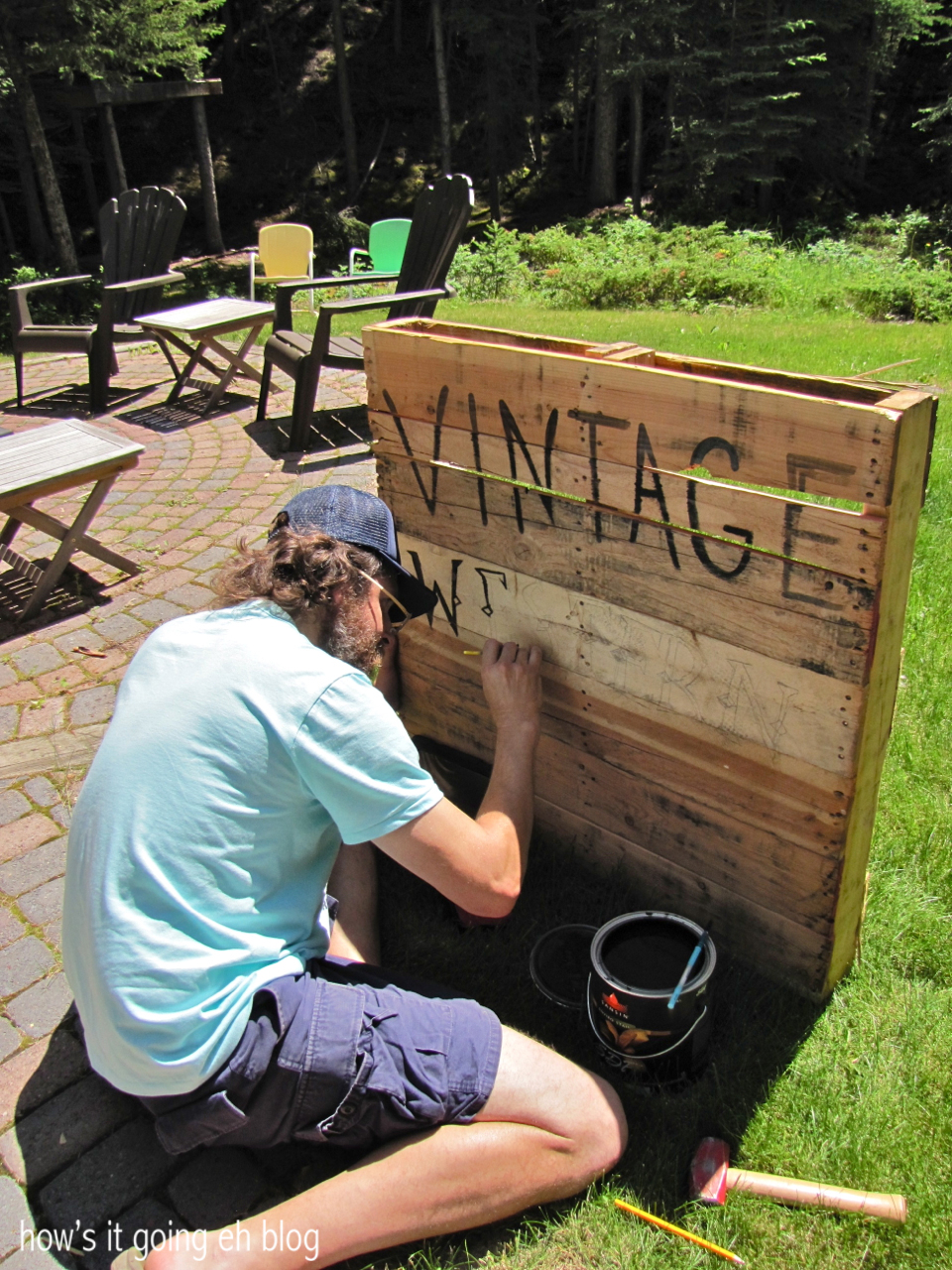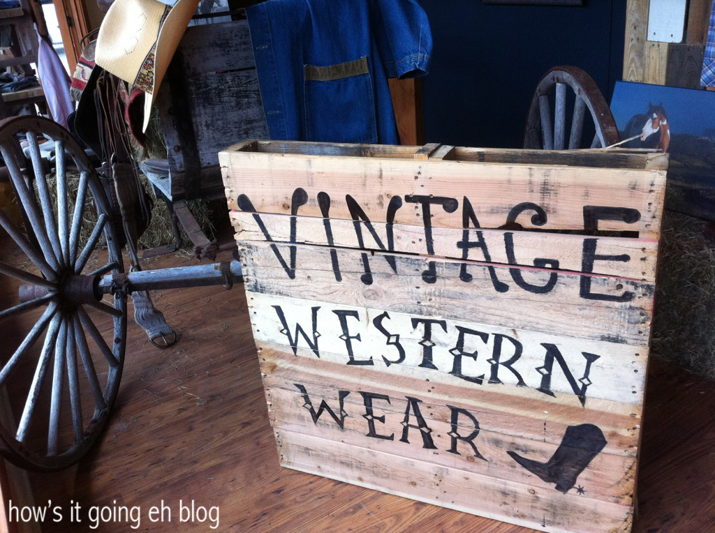 Fun times. Glamorous, no? I had the idea to paint a sign on a pallet board advertising our vintage western wear. Let’s just say that I was winging it + failed epically. “Jeff!!! Save the sign!!! PLEASE!!!!” I whined.