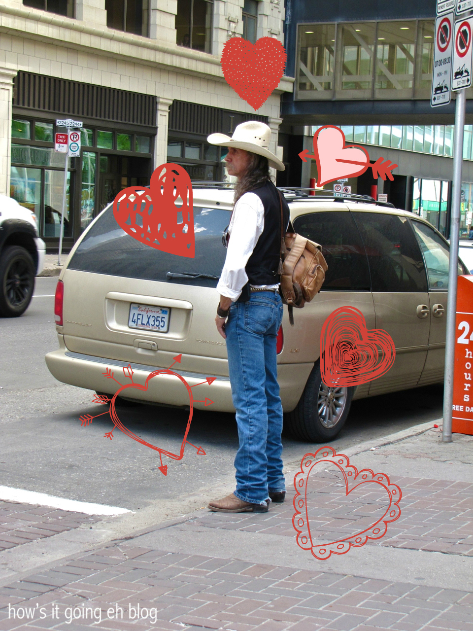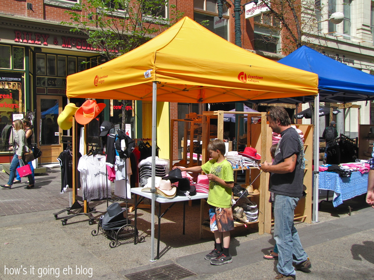For Stampede there were dozens of pop up tents selling cheap, shoddily made western theme goods for purchase. Don’t buy them!!! The cowboy hats are poor quality, horrible + way too pricey!!! Go all the way + buy a Smithbillt hat or a vintage score at a thrift store!