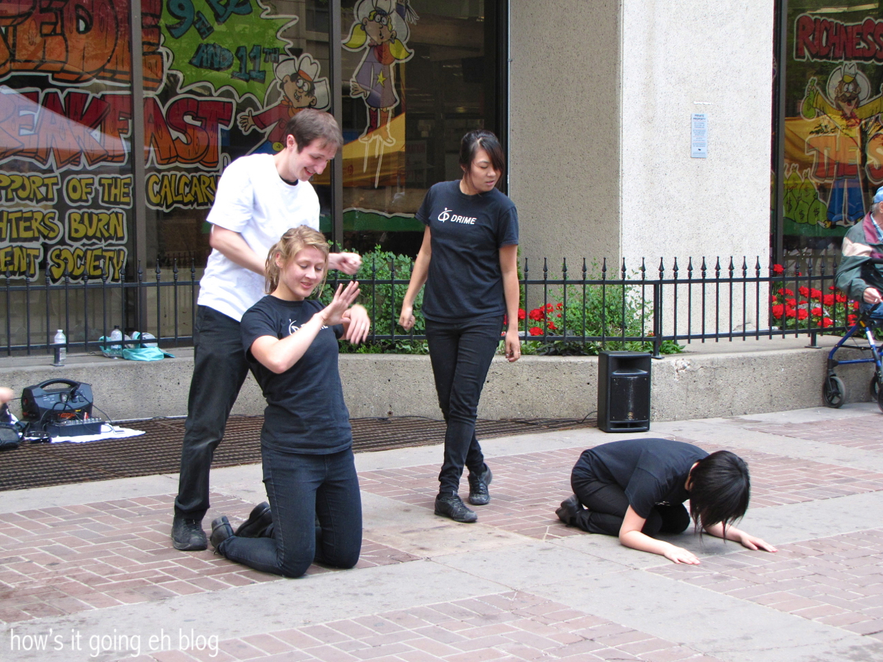 You know that there will always be street performers…here are some kids putting on some expressionist dance set to music. I’m instantly intrigued….what in Sam Hill is going on here?!
