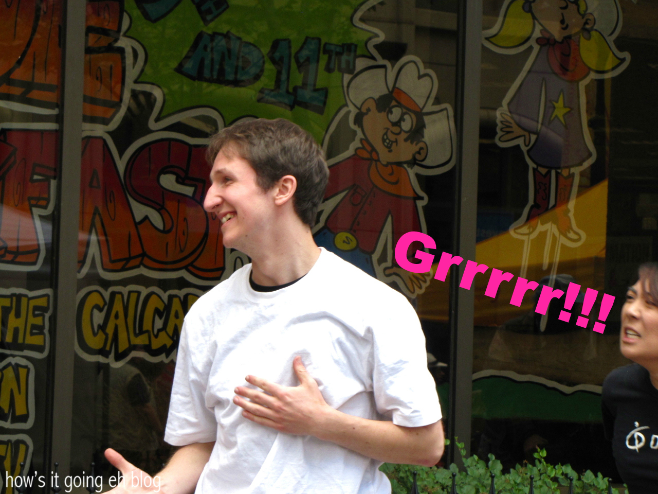 “WOOOHOOOO!!!!!” I screamed as I pumped my fist in the air. “CAN I GET A PICTURE OF YOU!? I’M AMERICAN!!!!” I blurted out, as if that was an explanation for my turrets-like screaming. “And your point is?” he retorted back at me. Nice!!! A Canuck that says what he thinks!!! Usually I dish out my, “I’m American” line + most Canadians respond politely by smiling + nodding.