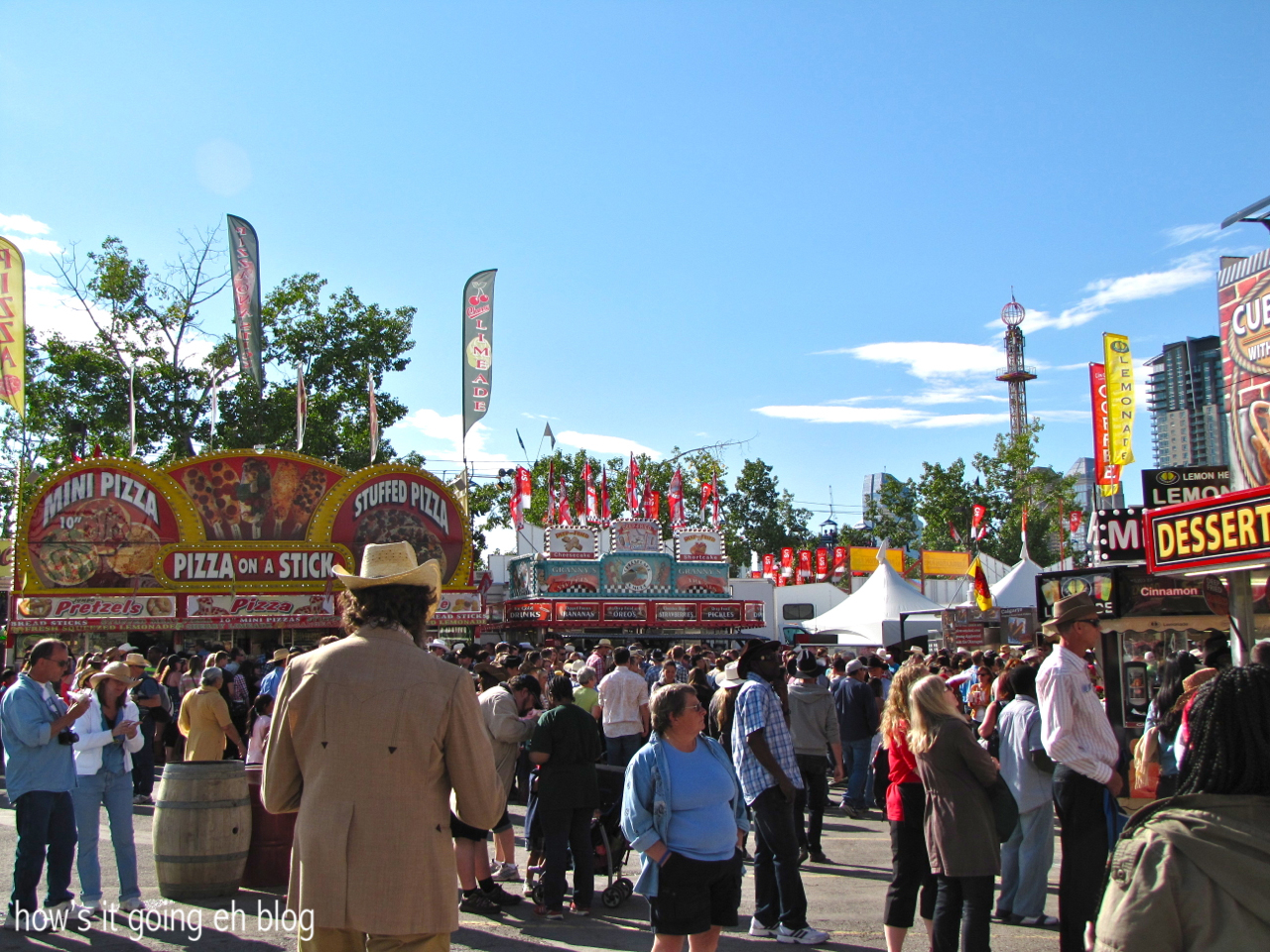 Stampede is a special event where people allow decadent gluttony to go hog wild. They loosen their belts, forget about calorie counting + eat forbidden foods that they would never dream of eating any other time of the year! Like fried butter, (we tried to find some but didn’t!) pizza on a stick, taco in a bag (what the heck is that) + any other artery clogging fried mess you can think of!