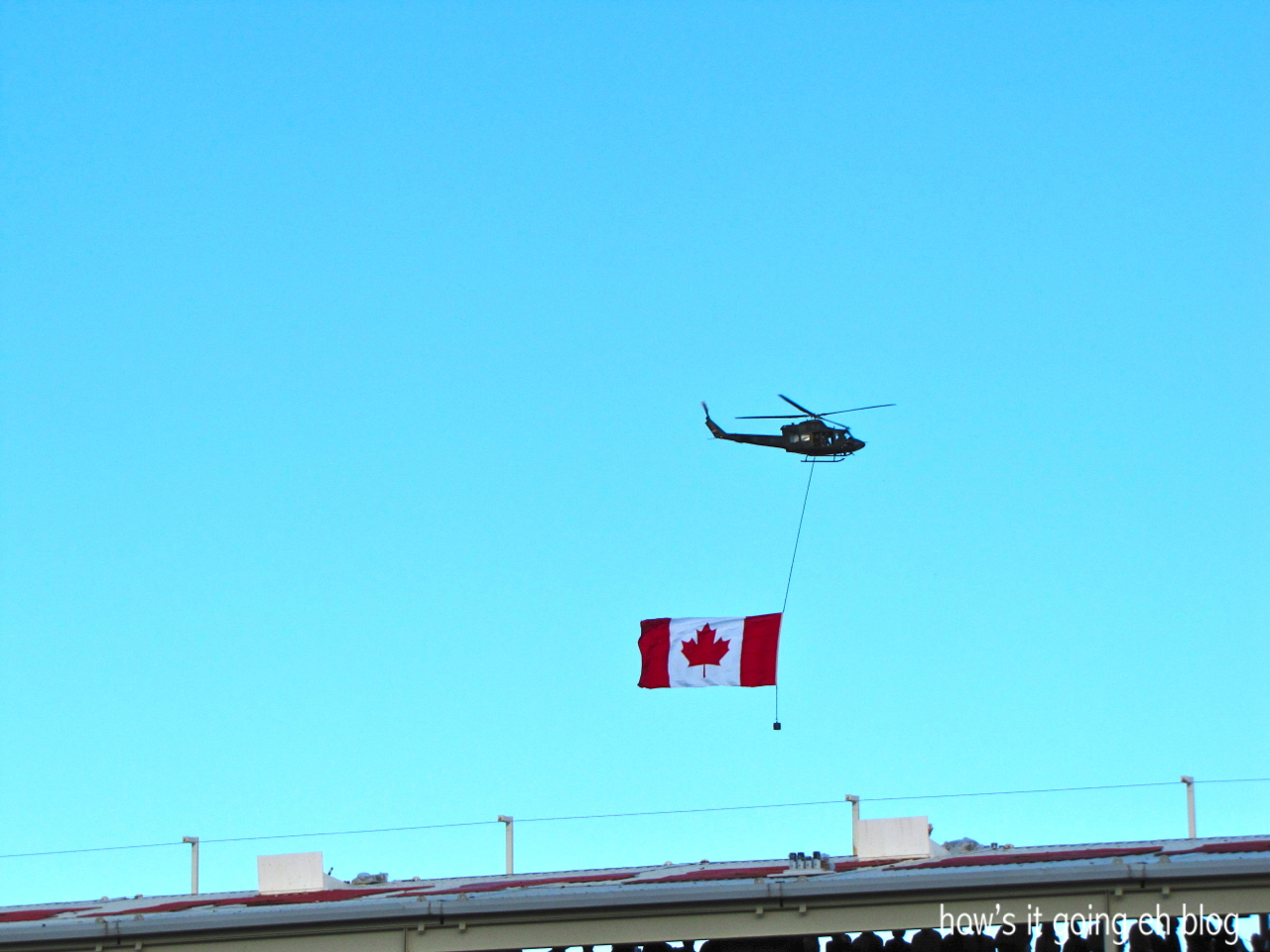 The Canadian Royal Air Force flew the flag as “O Canada” began to play…