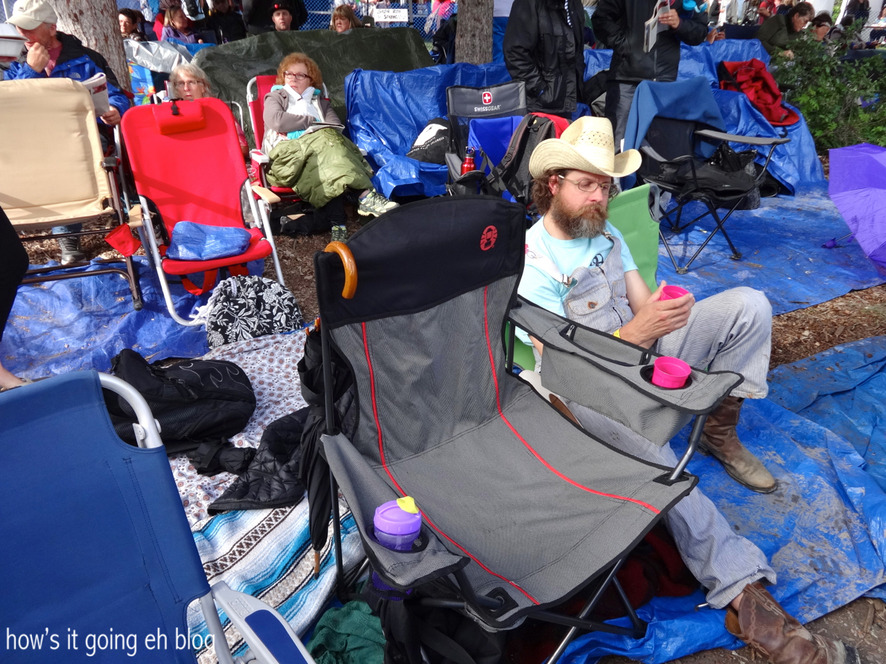 Seriously, you have to stake your claim to get a good view VERY EARLY!!! And plus, the festival has a chair height regulation – no joke! 24 inches high from the ground to the top of the chair back! Staff were walking around with rulers! I kid you not! But all of these chairs ARE NOT REGULATION HEIGHT!!! GRRRR!!!