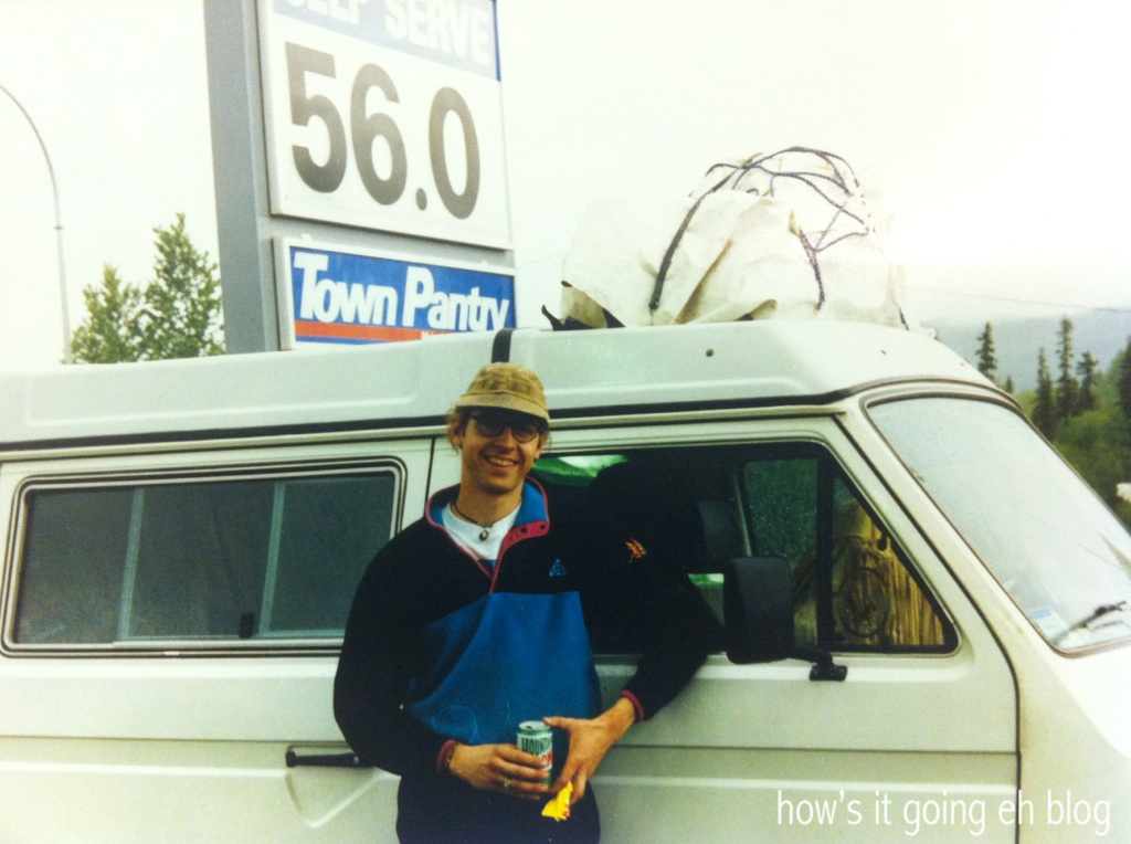 Jeff in front of his trusty steed, his Westfalia – check out the price of gas + the Mountain Dew can!
