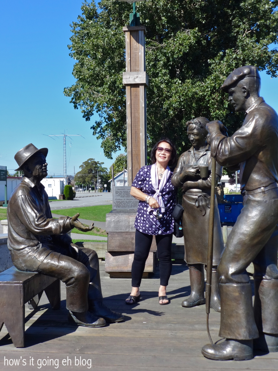 This statue is dedicated to the Japanese Canadian fishermen.  Before the war, the Japanese population was in high numbers in Steveston.  When they were relocated, the fishing industry took a huge blow due to their absence.Steveston - 10