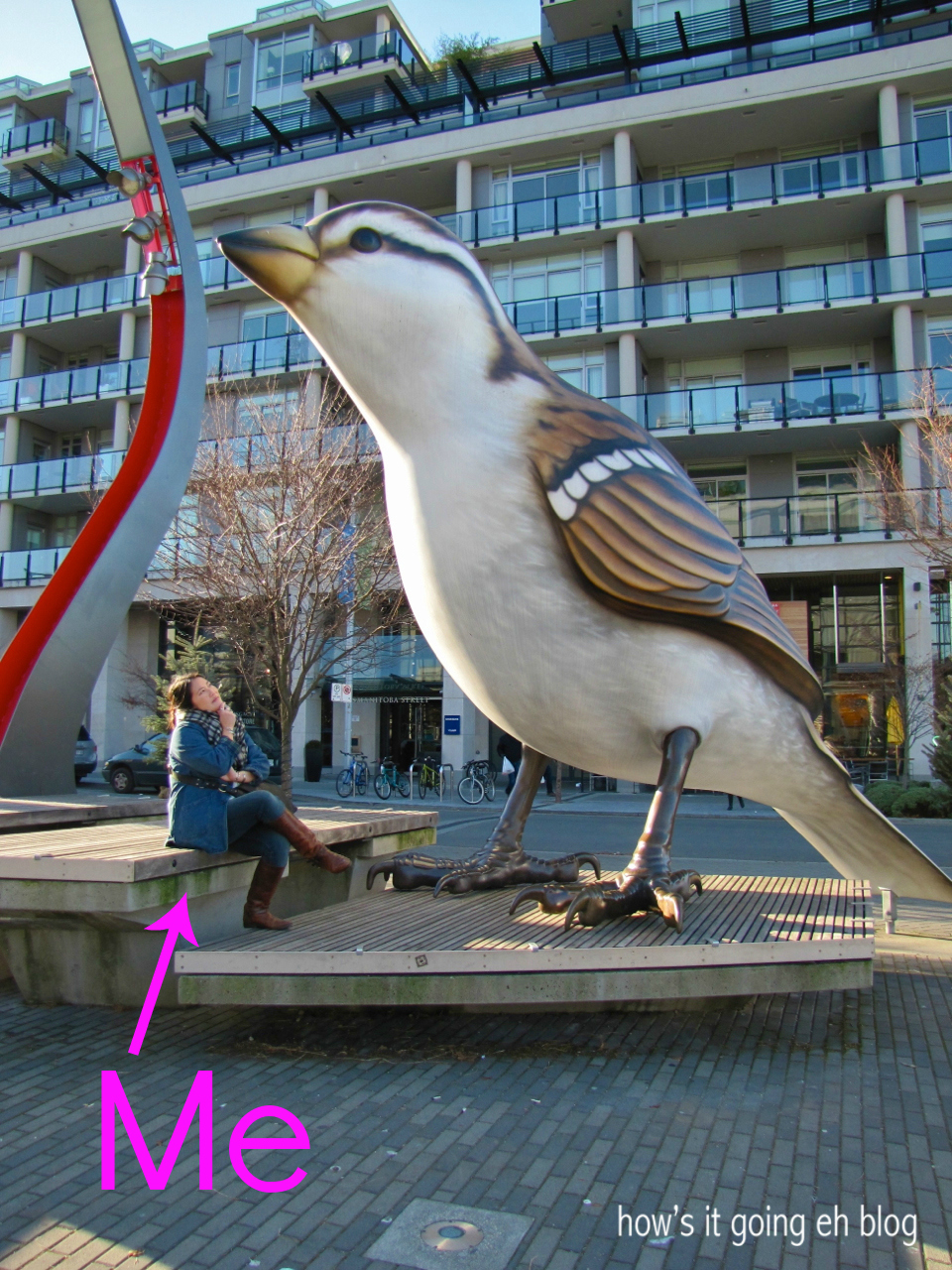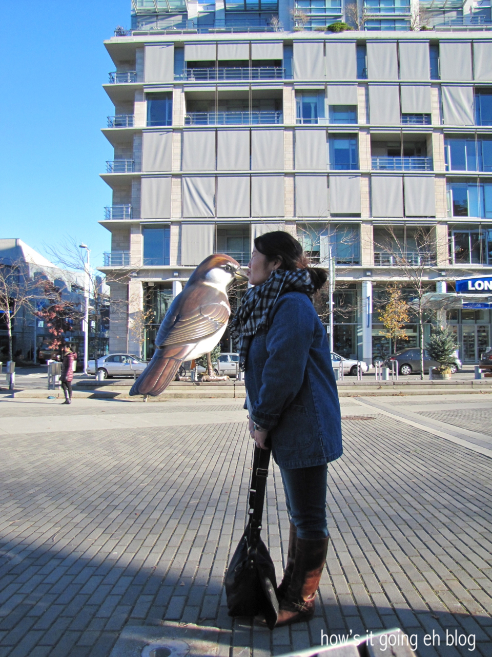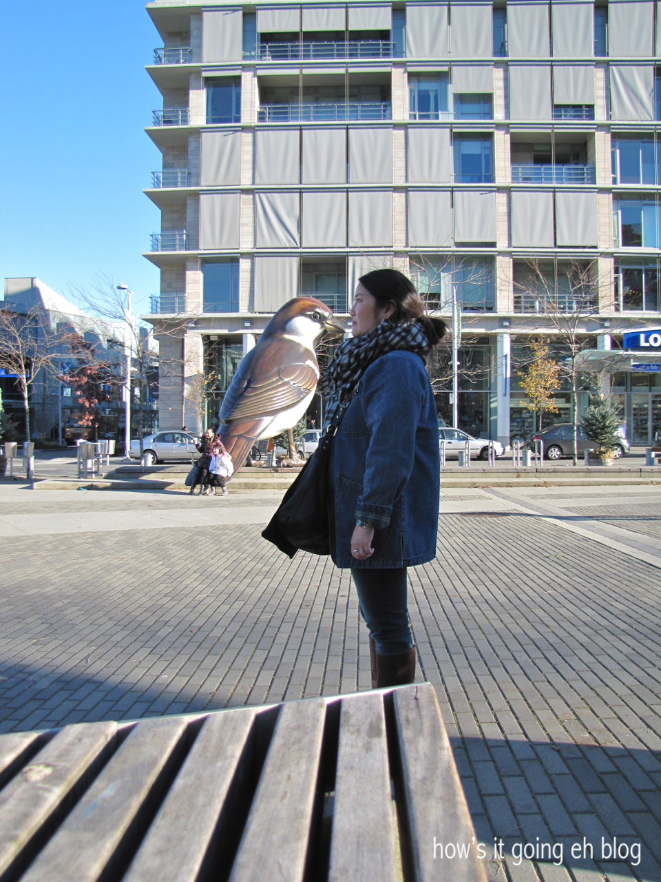 M + I walked over to check out the big birds in the middle of Olympic Village.