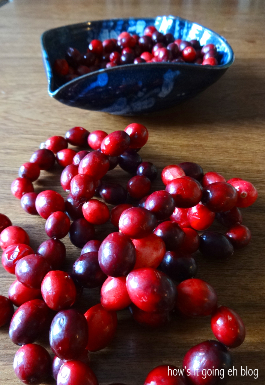 Last year + this year I made cranberry garlands. I learned a couple handy tips that made it easier this year. Previously, my sister + I had used regular sewing thread + regular sewing needles. Naaay, my friends – this is wrong. This year I used baker’s twine which is thicker + stronger. And a wool embroidery needle. Some of the cranberries are a little tough, so you need a sturdy needle to stick it to it! Plus, the tip of the wool needle is slightly rounded + not super sharp, which helps you avoid stabbing yourself. All in all, makes stringing MUCH quicker!