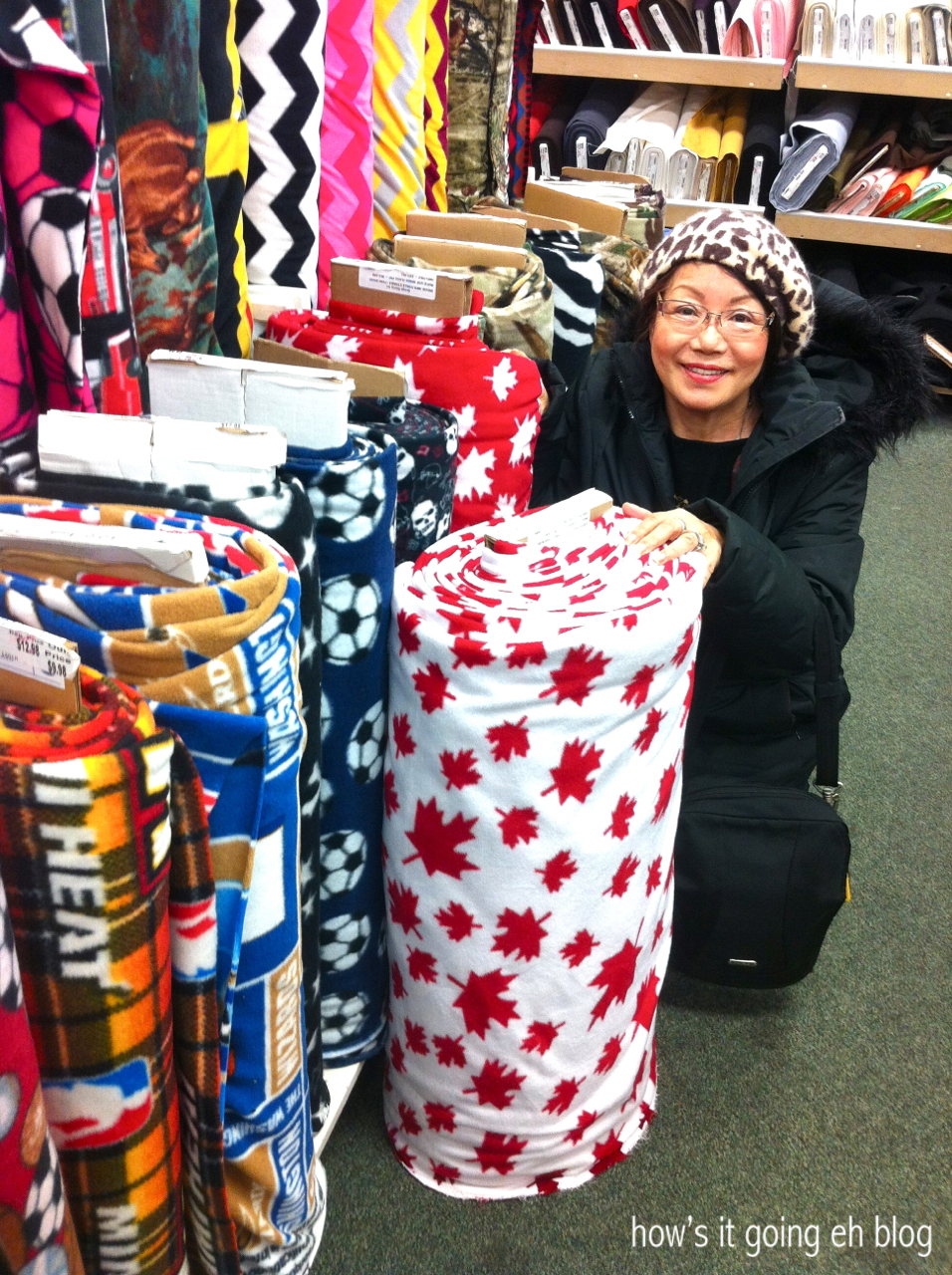 Mom + I have been running (waddling) around town doing last minute errands. Like cuddling up next to Canadian themed fleece at the fabric store. Although…the past couple days my mom has quarantined me to the house so that the baby waits for Jeff to be done with work. I am under house arrest.