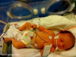 Langdon Takehiko David Fayle was born at 11:15pm on Saturday, April 5th 2014 at 8lbs 22 inches!!!  And what a birth…straight out of the birth canal + whisked away by the NICU team.  Meconium Aspiration Syndrome.  My poor baby.  My first visit to the NICU on the night of his birth.  My own mangled, IV ridden hand is at the bottom right touching his little foot.  I could cry right now thinking about seeing him in that bed.Oh Boy - 01