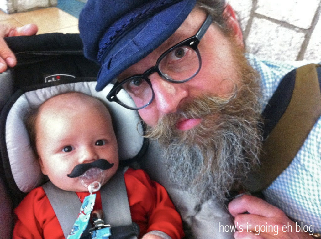 Ah…a definite resemblance.  Thanks for the moustache soother Auntie Ashley!  Like father like son.Blog - 03