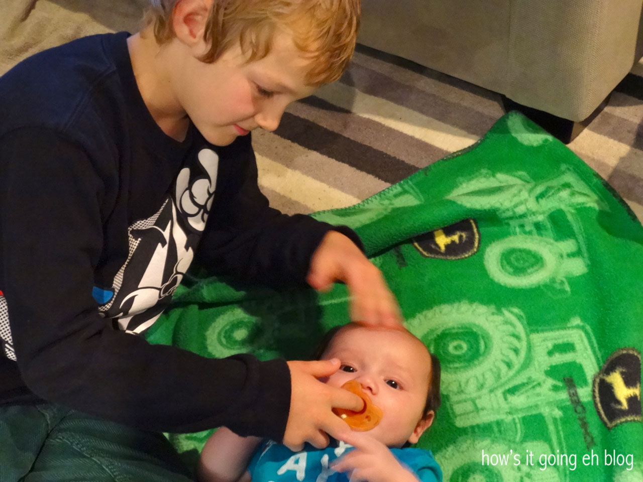 Langdon’s older cousins (who he adores) have been helping to take care of him.  Here’s Tobin soothing + comforting Lang Lang.Blog - 07