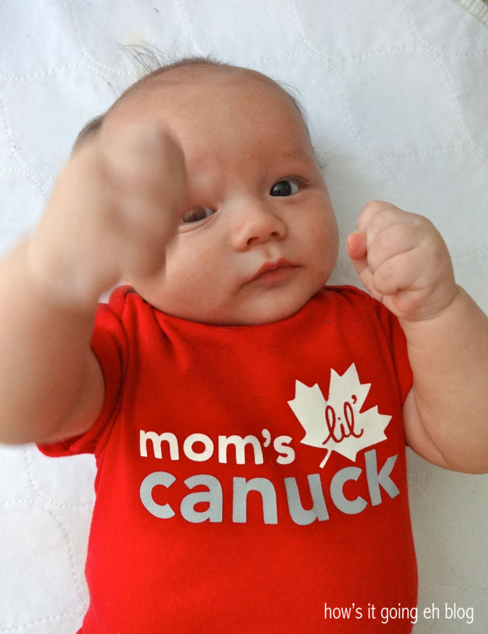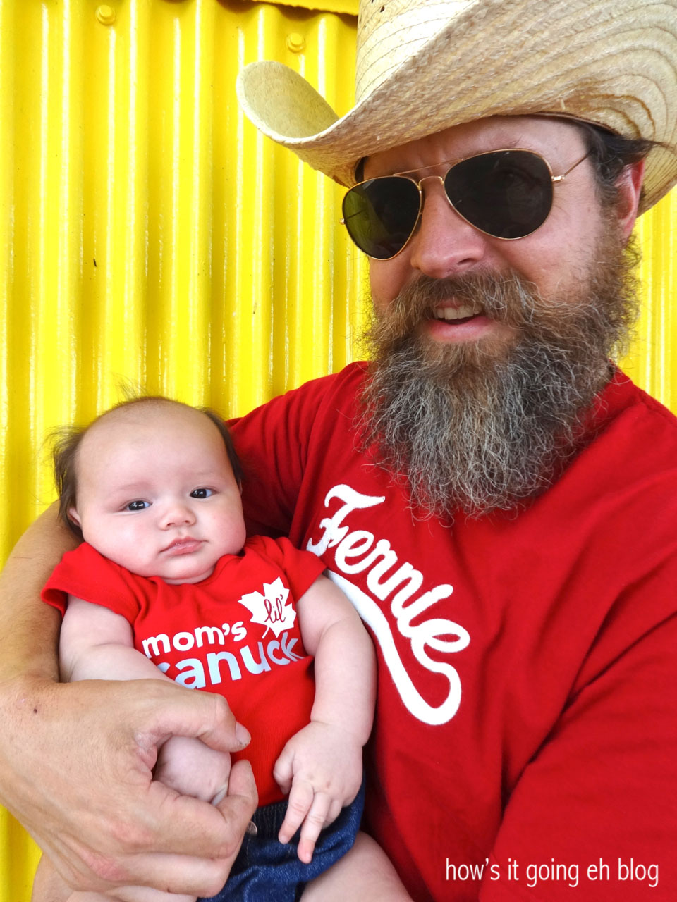 July 1st is CANADA DAY!!!!  Langdon’s first Canada Day!!!  Do you like his Wrangler jeans bloomers?  It’s really awesome to have costumers as friends – because they give THE BEST gifts!!!  What a little Canuck!  Next he needs a Canadian Tuxedo.  Some denim on denim action.Blog - 09