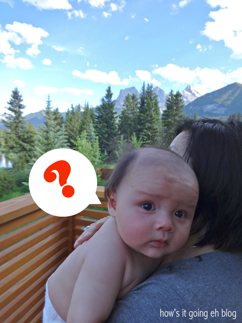 Mom took Langdon out on the balcony for some air. What an awesome view of Canmore’s Three Sisters!