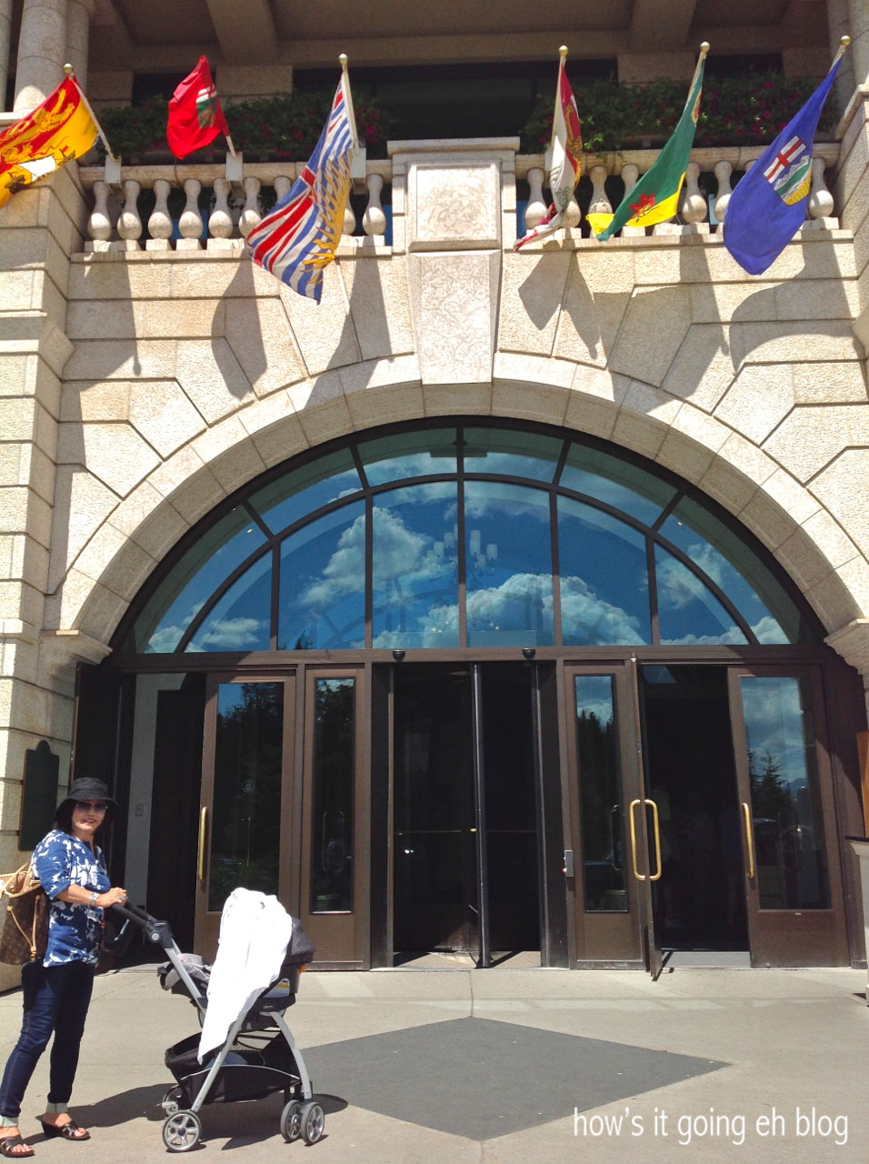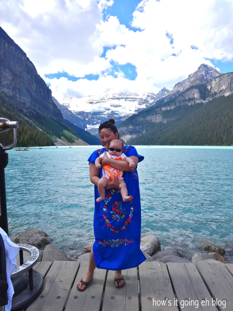 After walking around Lake Louise, the three of us had lunch at the Fairmont. This is when Langdon woke from a nap, screamed bloody murder + had to be soothed. Then after lunch he was given a bottle, then he pooped all over himself + his cute little outfit + then his mom cursed + swore under her breath. And no, I don’t have any pictures of any of that drama.