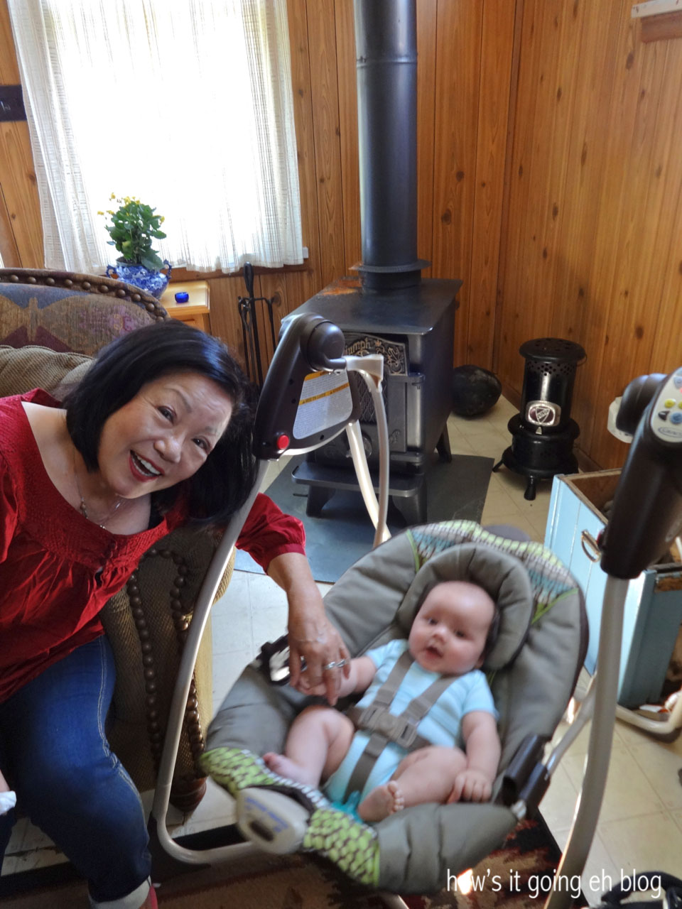 Mom + Langdon settling in. Does it look like we’ll be living in a log cabin? Well, we kind of do. Welcome to the country.