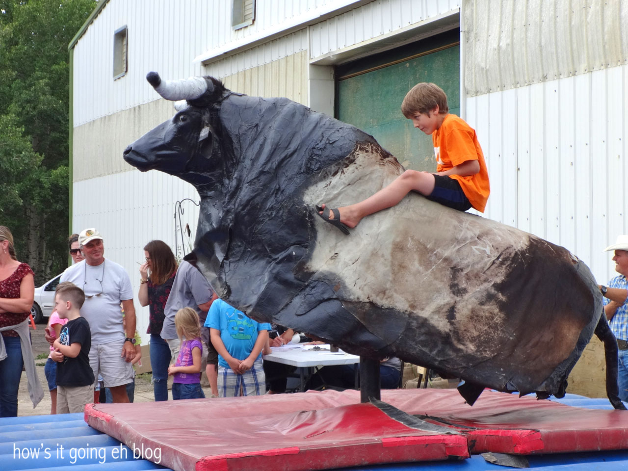 When in Rome they say!  Or when in the country – go to the fair!  Jeff was working into Saturday morning, but he toughed it out + we arrived at the fair in the early afternoon.  I knew we were in the right place when I saw some bull riding taking place.Blog - 01