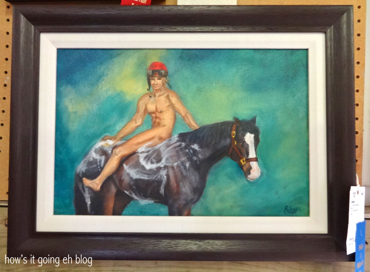 When I walked over to the arts + crafts section I HAD to get a picture of this naked jockey sitting backwards on the horse!!!!Blog - 13