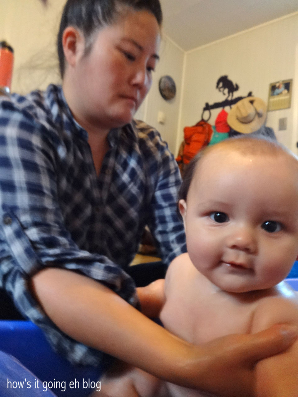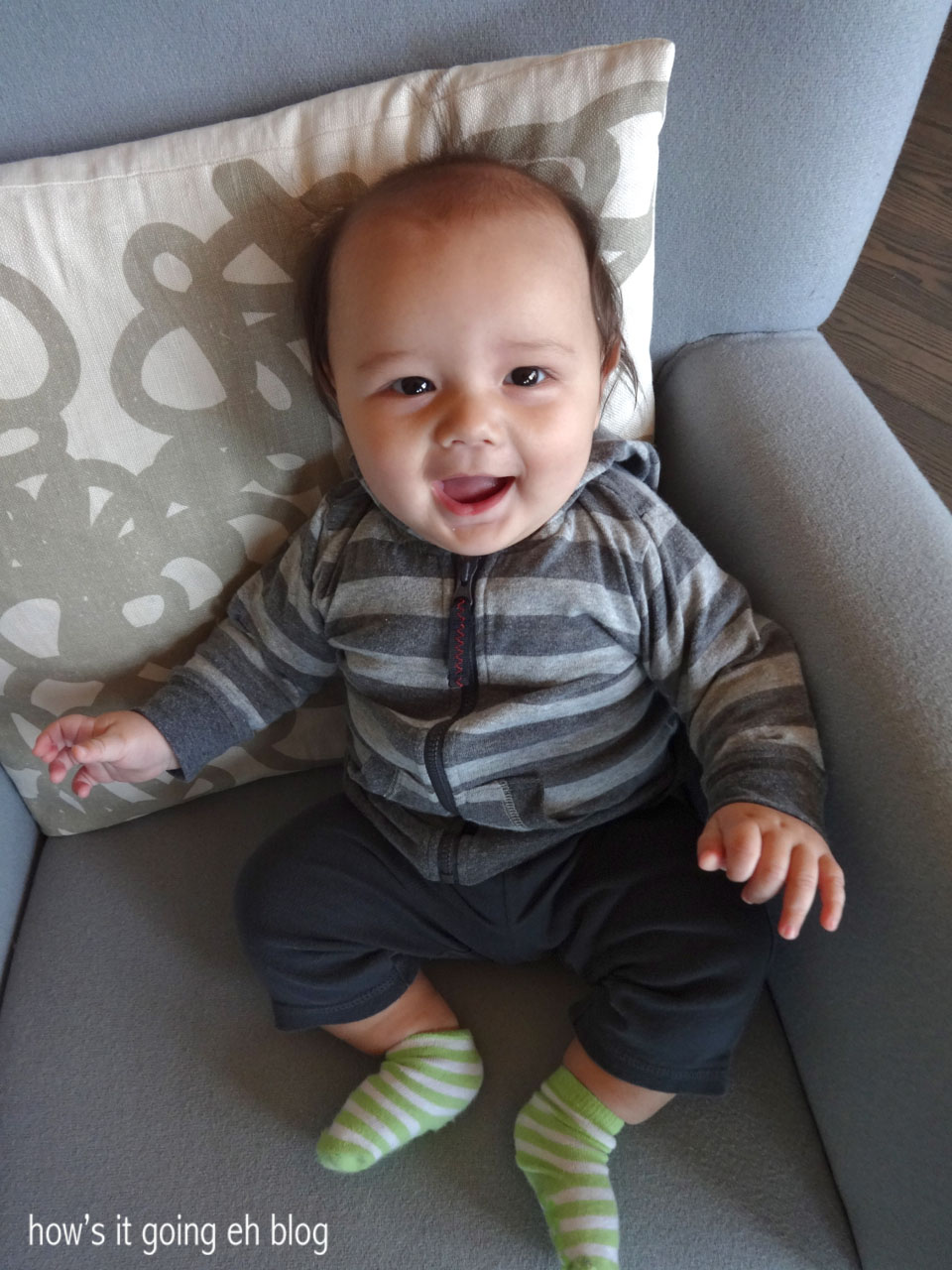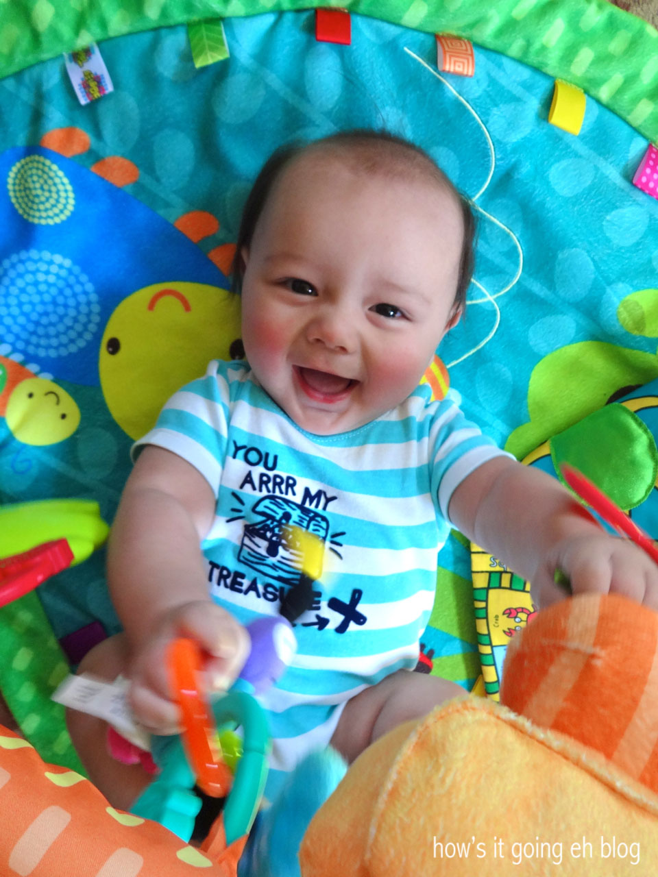 By the way, Langdon is still 4 months old but according to his weight + measurements he has the girth of an 8 month old.  Holy mackerel.