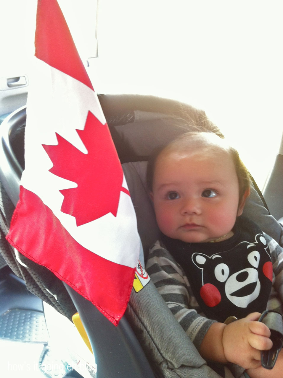 One day at a thrift store an employee gave me a Canadian flag because I told them I was American.  Langdon loves flags + he loves the color red, so while we’re driving sometimes I let it flap in the wind much to Langdon’s amusement.  Happy Canuck.blog - 14