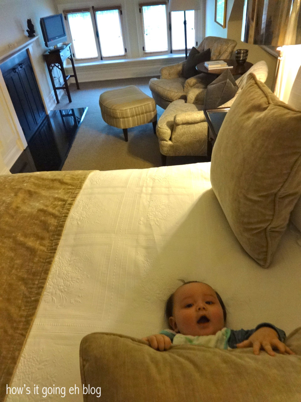 “Thank you for showing me to my room, I won’t be needing anything else at the moment.  Goodbye.” Langdon suavely waved us off.  The little man immediately set off for dreamland on his down filled bed.  He now turns his nose at anything less.  Posh Baby.Langdon Hall - 07