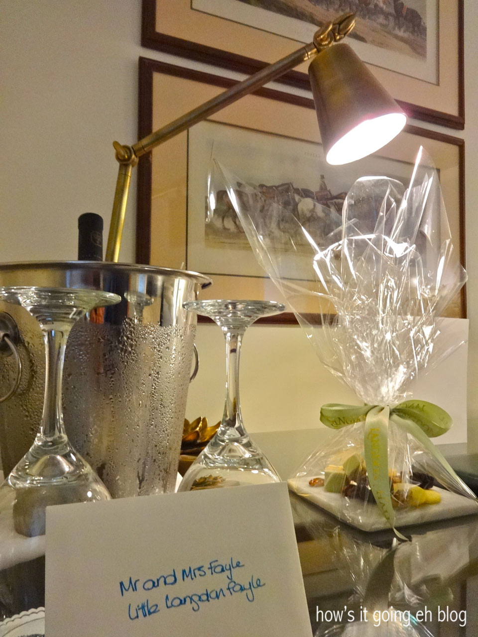 And can you believe it – we were welcomed with a bottle of wine on ice, petite fours, cookies, chocolates + a special note from the owners William Bennett + Mary Beaton!!!!  SO THOUGHTFUL + TOUCHING!!!  “LITTLE LANGDON FAYLE” AWWWWW!!!Langdon Hall - 06