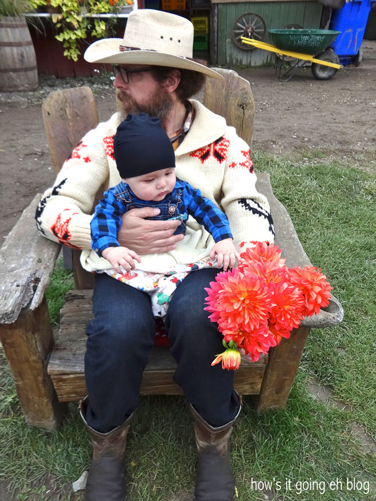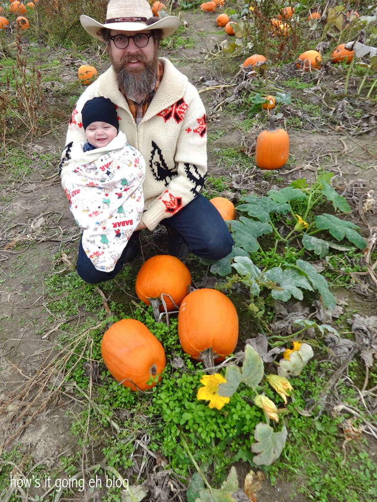 Earlier in the month, Jeff, Langdon + I drove a half hour south from Vancouver to Ladner to visit Westham Island Herb Farm for first pumpkin patch time! We strolled among the rows of produce + flowers. It was a bitingly cooooold day + I obsessively wrapped Langdon up in blankets. A very serious father son portrait.