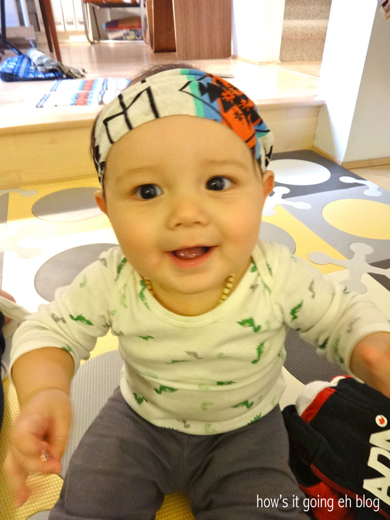 But we have managed to have some fun. I was cutting some fabric to make him pants + tied a strip onto Langdon’s noggin. Ralph Macchio! Karate Kid!