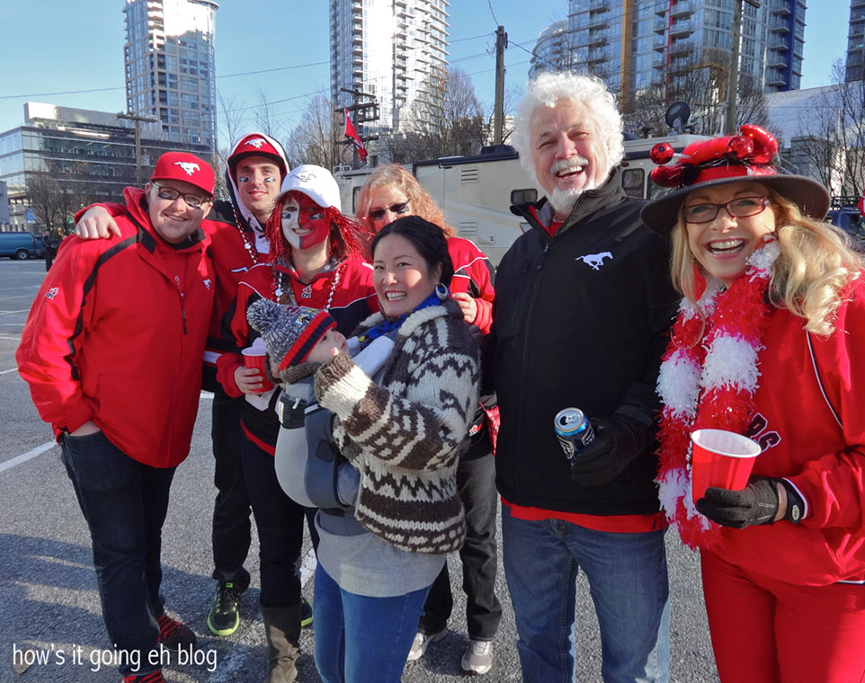 Don’t I look like a serious midget amongst the Stampeder fans?!  A lot of Canucks are freakishly tall.  Viking blood???
