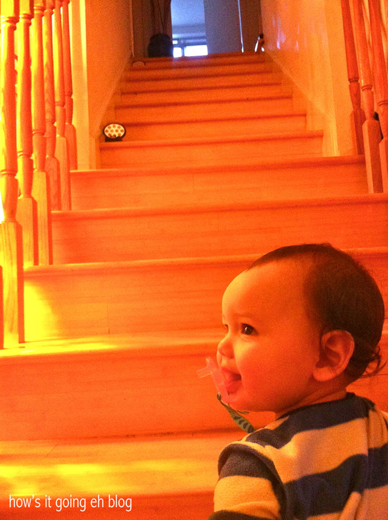 And climbing up stairs? Yeah, loves it. We “spot” him as he goes. Lord help us.