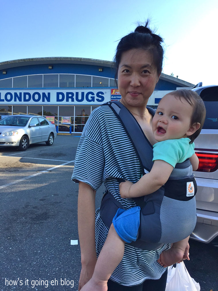 When leaving the restaurant, Debbie wore Langdon in the carrier. I was like HOLD UP GIRL, let me get a picture.