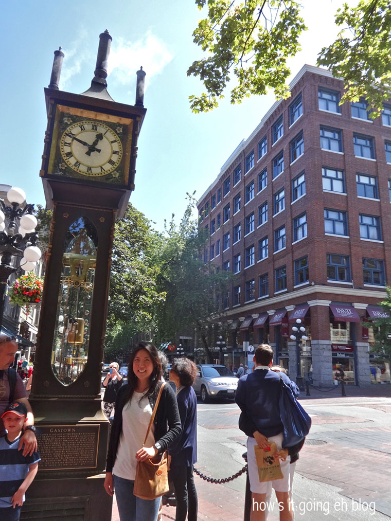 On Debbie’s last day we did some cheesy sight-seeing in Gas Town – which does have an interesting history. I forced Debbie to take a picture in front of the steam clock that signals the time with it’s whistle + squeal.