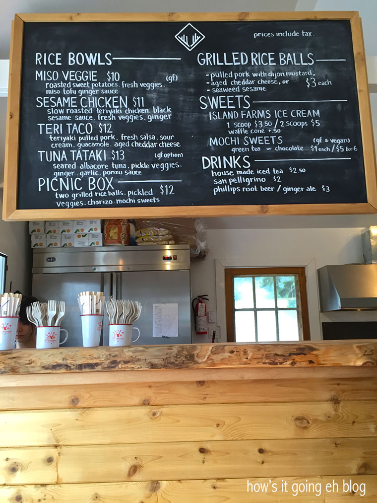 After wandering around + doing fashion photo shoots, we were famished! Someone told me about a Japanese restaurant called Shika Provisions so we returned to the marina in Snug Cove to find it for ourselves!