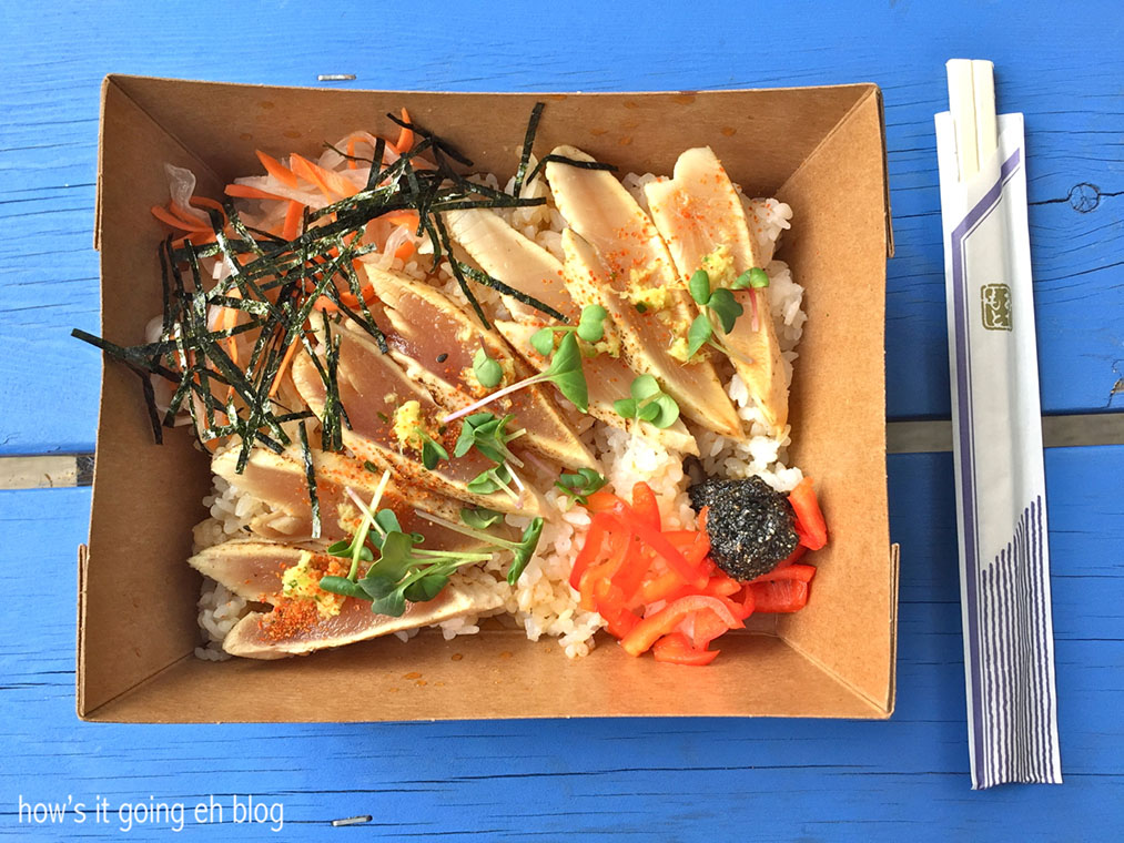 I got the tuna tataki bento. It was delicate + so light + tasty! I loved the dollop of black sesame paste! I loved Shika so much, we sought out their sister restaurant Kuma in Tofino! Wait till you see those pictures! Drool!!!