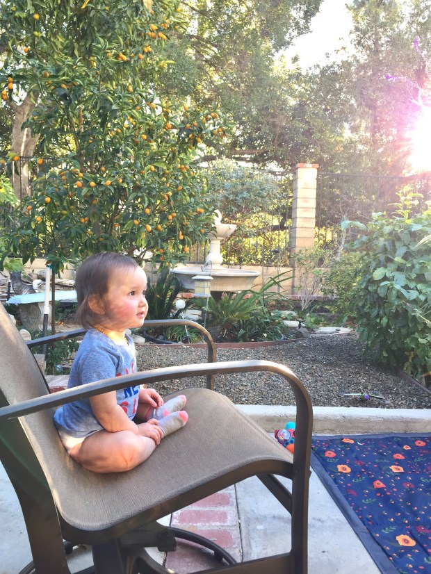 My sister picked us up from the airport, we changed into summer clothes + spent the afternoon outside in my mom’s magical backyard.  I mean, look at this sparkly baby in the twinkling California sunshine!  No more rain boots + down coats for us!