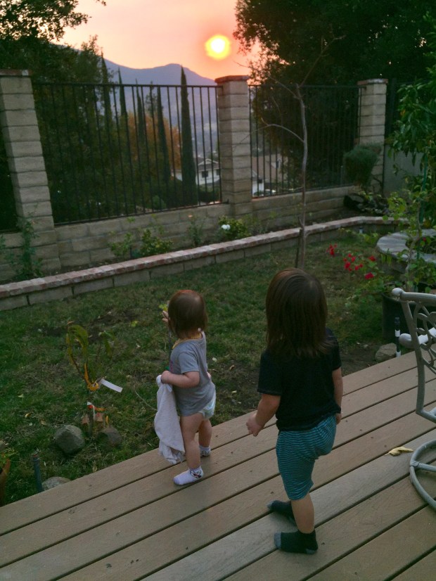 The red from the sun reflected on Langdon’s face.  Why are my children so weird?