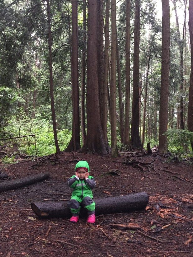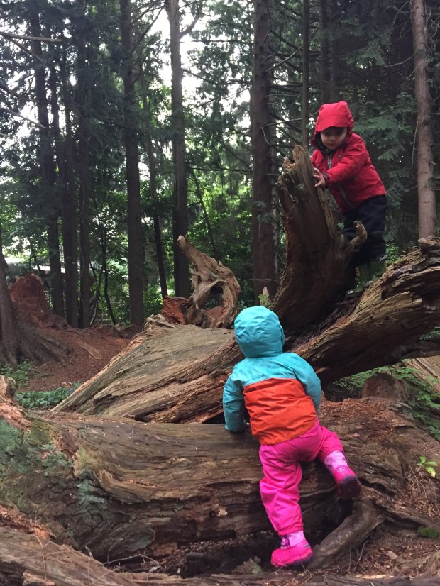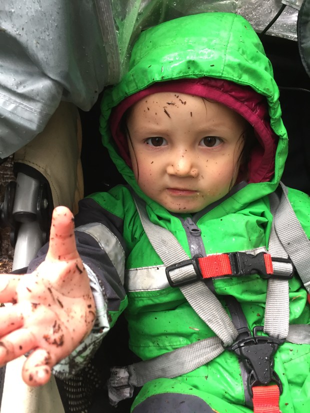 Every Wednesday the three of us attend Strong Start, where the fabulous teacher conducts an outdoor program. Rain or shine.