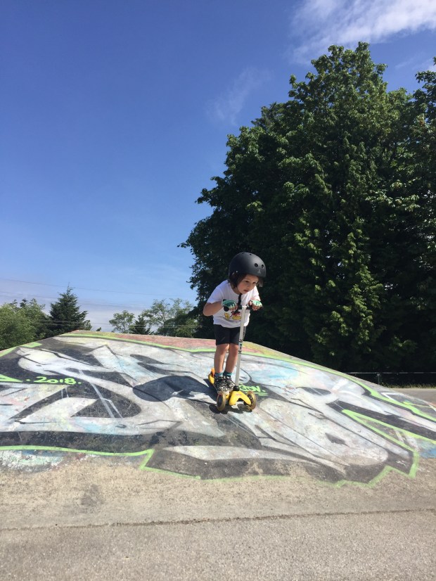 Lang is into everything right now. His two wheel scooter. His three wheel scooter. His balance bike.