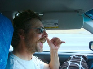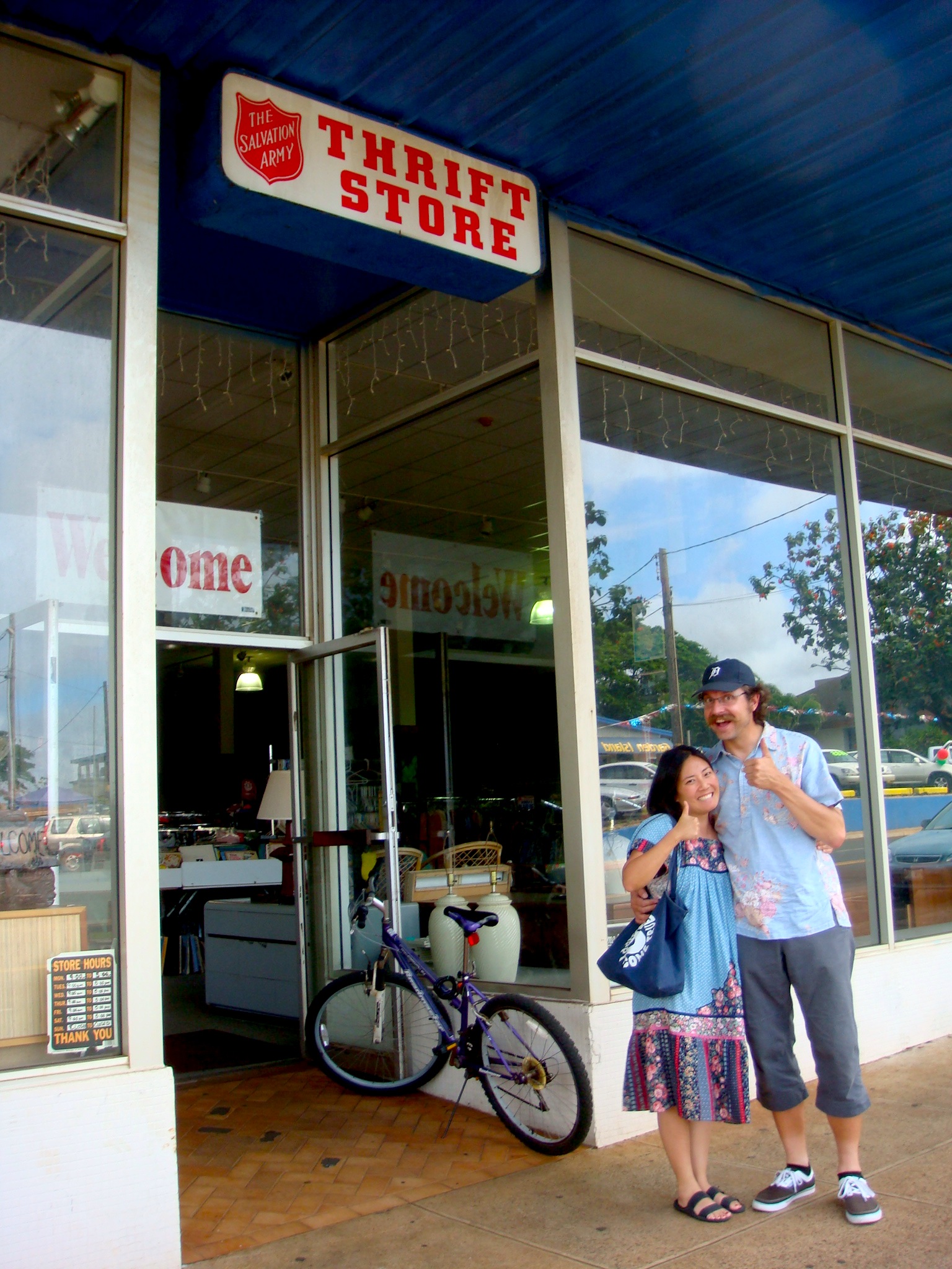 I’ve made an executive decision to abbreviate yesterday’s volcanic activities. There’s too much to post. Let’s just say we encountered a group of people + the women + girls were all dressed in full length dresses + bonnets. I saw the father/husband/elder + one of the girls at the Hilo Salvation Army. Jeff + I assumed the girl was just a Laura Ingalls Wilder fanatic. But there was a whole group of them! Cult alert!!!! Jeff distracted the father/husband/elder by talking to him about “getting back to the land” + took a covert picture. I couldn’t even go near the father/husband/elder because he creeped me out so much + he was wearing dirty 70’s Lee jeans.