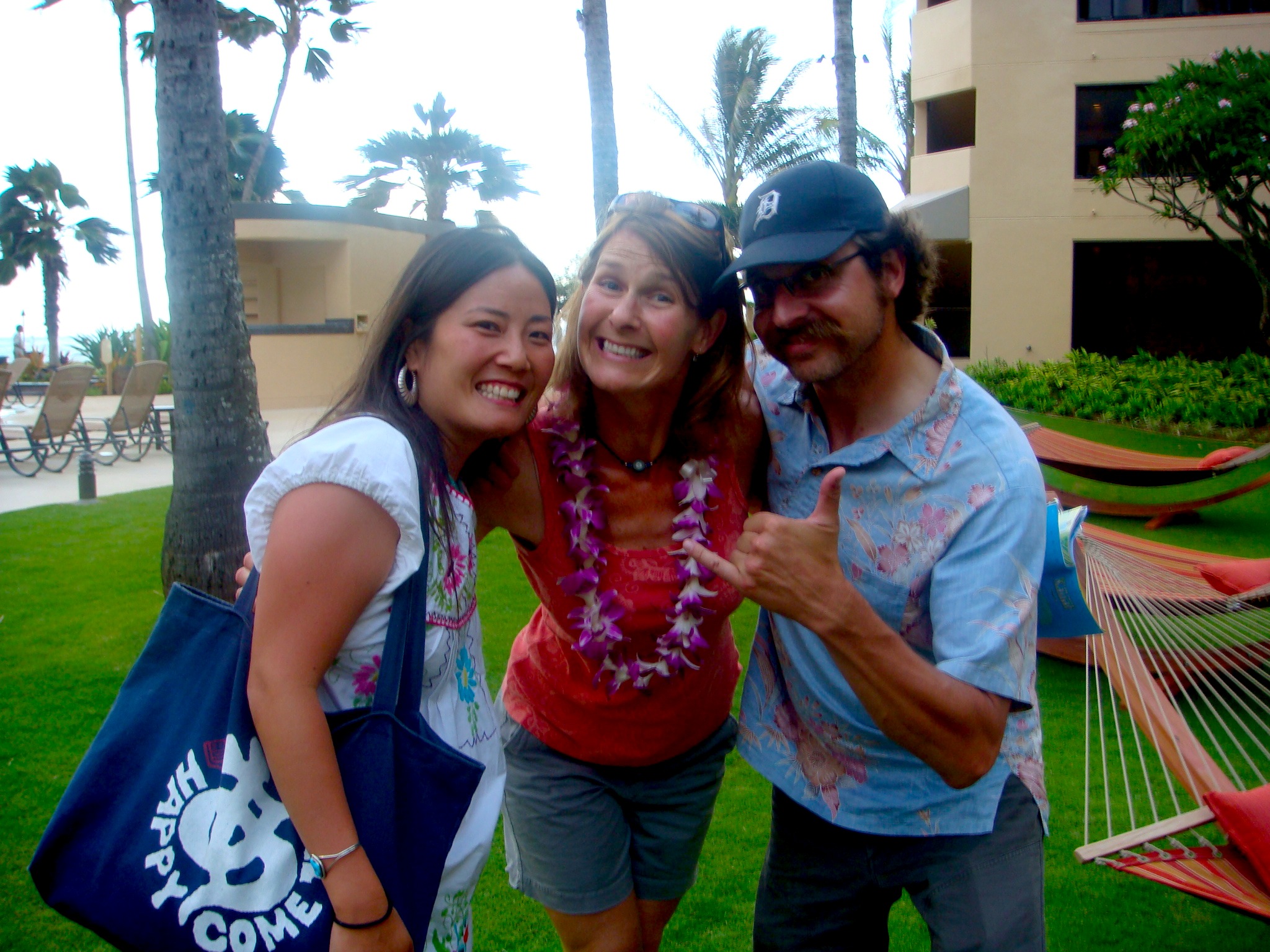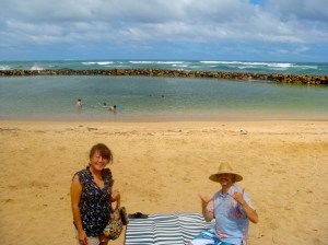 There was a sign clearly stating + illustrating for tourists to stay 15 feet away from the turtles. On the way back from the bathroom we saw some dumb ass tourists posing RIGHT NEXT TO THE TURTLES!!!! I was enraged!!!!!! I screamed, “Hey!!! Hey!!! Do you see this sign (as I pointed to it)???!!! 15 feet away!!!” Jeff had to take me away. The poor, harassed turtles. We met a couple local haoles on Punalu’u + they told us about a beach that is not on the map + is the perfect spot to see as far as the eye can see. I’m not going to divulge secret info on a blog but they said, “When you pass XXXXX, you’ll see some XXXXXX, and that’s when you’ll make a XXXXXX. It’s one of the best surf spots on the island. There is a man named Uncle Abel who is a Hawaiian institution + he’ll show you the way.” Sure enough, we got to the XXXXX + we saw 3 men chilling – I was nervous, but Jeff is friendly + confident in that way. We ended up hanging out with Uncle Abel, Uncle Joe + his son, drinking beers + talking story. Uncle Abel has been on his land for generations. The government has been trying to kick him off his land for decades + it is a constant battle for him. He was so wise, warm, kind, generous + spiritual. Here’s the bruddahs.