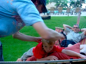 eff changed into his jinbei that my mom bought for him last summer in Japan for a staged photo shoot. Voila. Our room. The only Japanese style in the hotel.