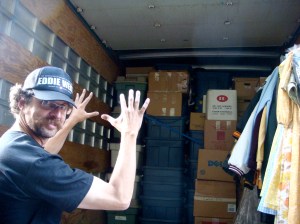 If you cosmopolitan folk don’t know what a 40 ft storage container looks like, this is a big leviathan. And this is what we filled yesterday.