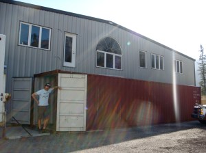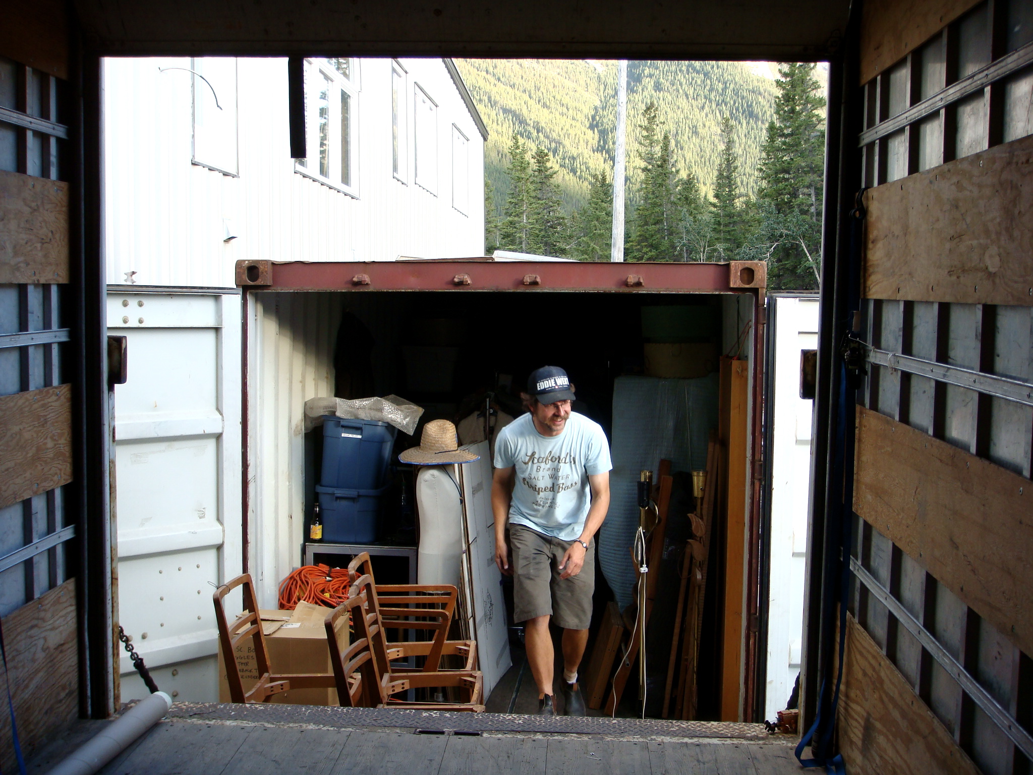 First off, we were off to research our alternative storage options to consolidate all of Jeff’s stuff, (things, tchotchkes, memories, whathaveyou). First, we checked out some transport trailers out in Exshaw which is 15 min from Canmore. Keith owns an excavating yard + has a huge, sweet shop that he sometimes rents out to films when they’re in town. Savvy!!!! He also suggested for us to rent out a 40ft storage container – love it.