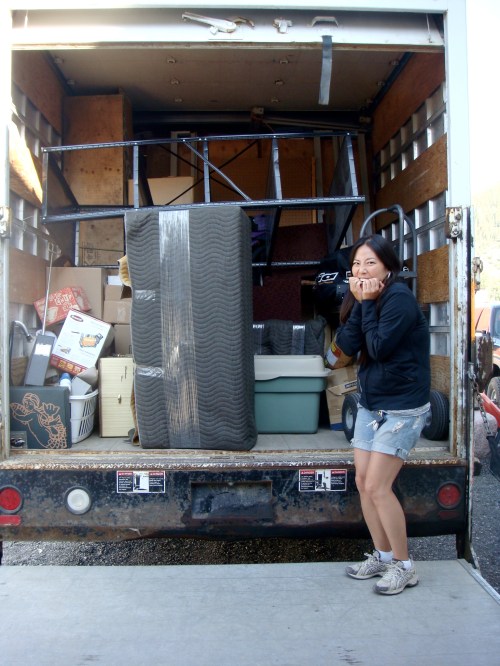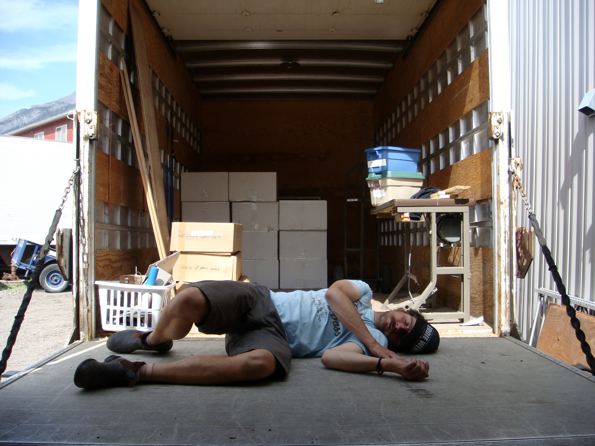 Poor Jeff is so tired + is working so hardcore. Here he is laid out on the liftgate after hitting his head. Note to anyone making a big move, some words of wisdom – YOU MUST GET A TRUCK WITH A LIFTGATE. I cannot stress that enough.