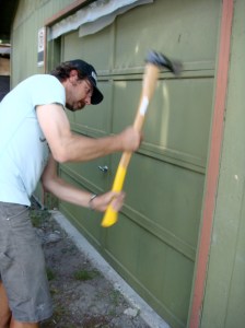 We drove back to Canmore for our second load + Jeff nearly burst a blood vessel because he realized we forgot the keys to the storage garage. He had a solution. This is how Canadians remove locks. Take an ax to it, Canuck!!!! Get ANGRY!!!!