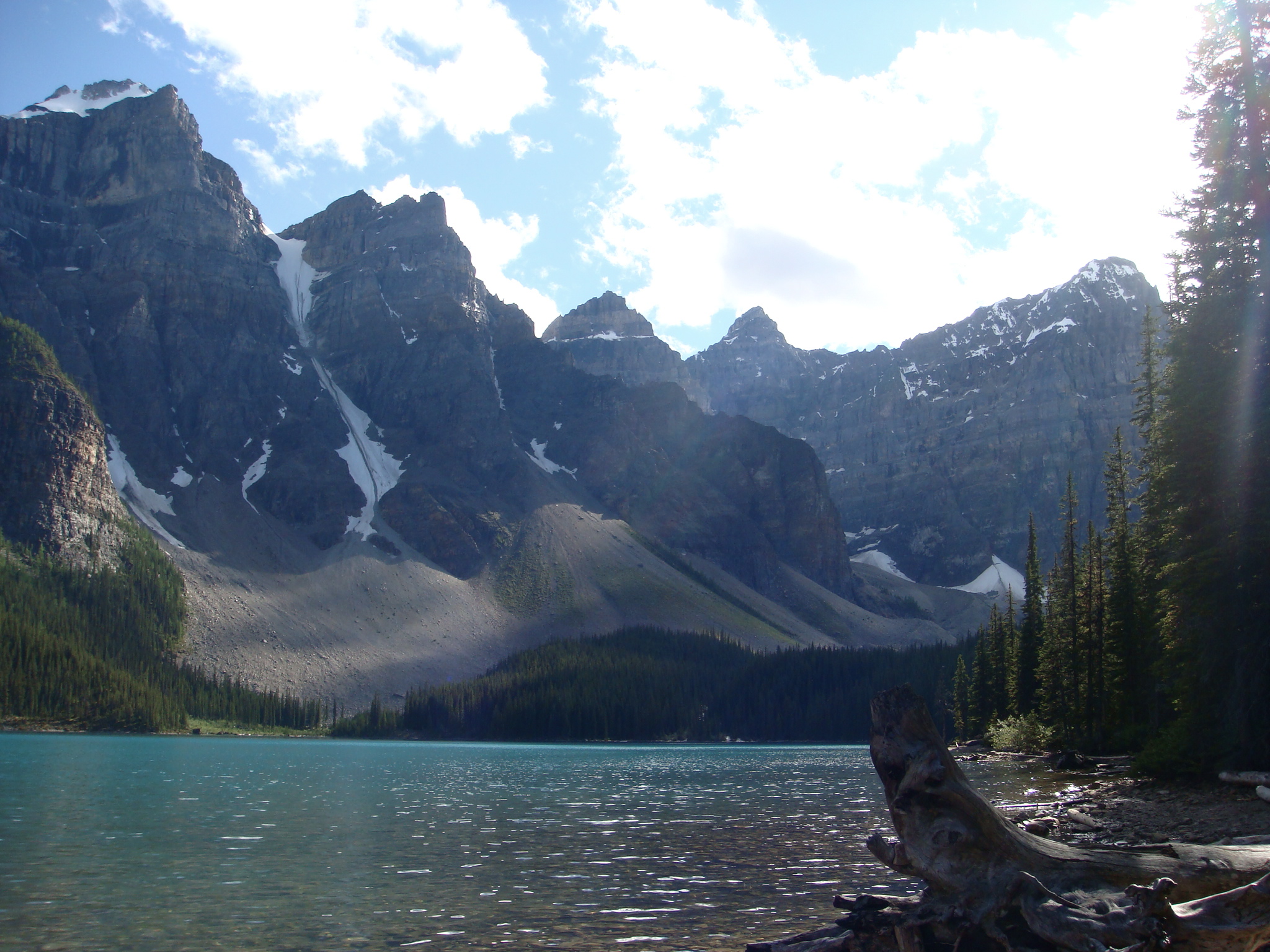 Thus, I decided to take the leisurely stroll along Moraine Lake. I stopped upon a log in the lake for another snack. It was so beautiful that I almost started crying if it wasn’t for the annoyingly loud group of Brits behind me talking about how expensive a glass of wine was at the lodge. I’m like, my god if you really want to talk this much, why don’t you all go meet at Starbucks?! So annoying!!!