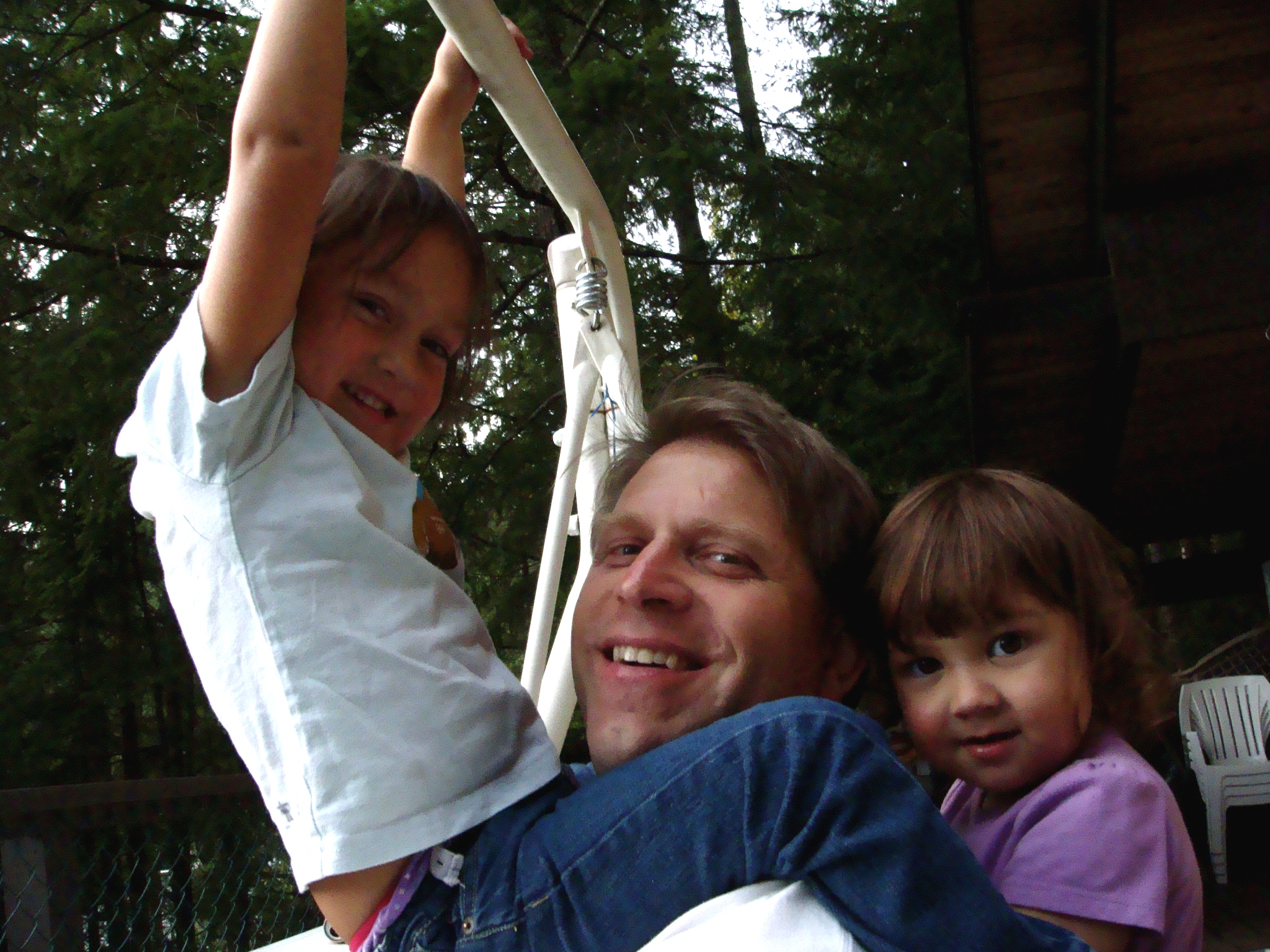The girls love to yell, “Again! Again!!!”. This picture cracks me up because I didn’t use a fast shutter so I only caught Jeff’s legs right after he jumped off the roof. Doesn’t it look like muppet legs dangling from the top of the frame?! Hah!