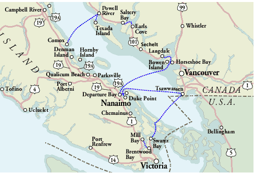 First, is the hour long BC Ferry trip from Horseshoe Bay to Langdale. Then, it is an hour long drive up the Sunshine Coast to where Steve + Liz’s boat dock is.